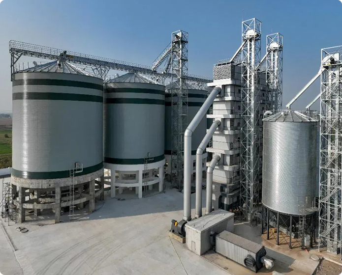 | Grain (corn, soybean) | Concrete or Steel Silo | Ventilation, temperature monitoring, dehumidification, fumigation |